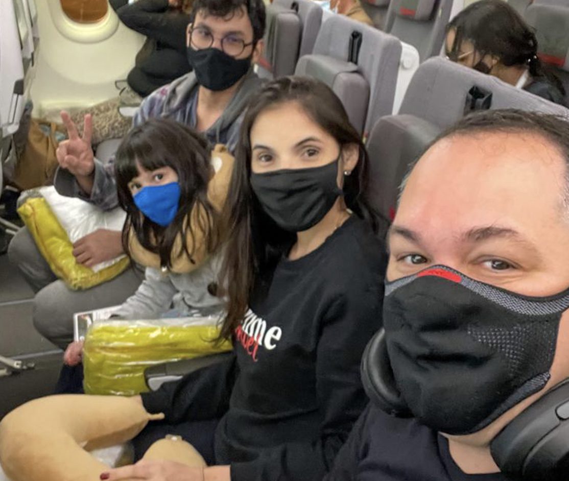 Já havíamos avisado da entrega de nosso apartamento, já havíamos tirado a cabrita da escola, já havíamos vendido o carro e estavamos “presos” em Recife. Mudamos para outro apartamento, muito menor, na esperança que as fronteiras abrissem logo. Lógico, não foi assim. Depois de muito tempo avisaram que iriam abrir. Tudo certo. Visto do marido na mão. Passagens remarcadas e… fronteiras fechadas de novo. Para terem ideia cancelamos as passagens seis vezes antes de embarcamos. Terminamos indo, puxando o cachorro e a carroça, para a casa de meus pais. Eu, marido, cabrita e cabrito dormindo em quarto improvisado. Foram três meses divertidos, foi bom curtir a família tão “perto” de ir embora. Ficamos lá até a fronteira abrir e finalmente podermos embarcar.